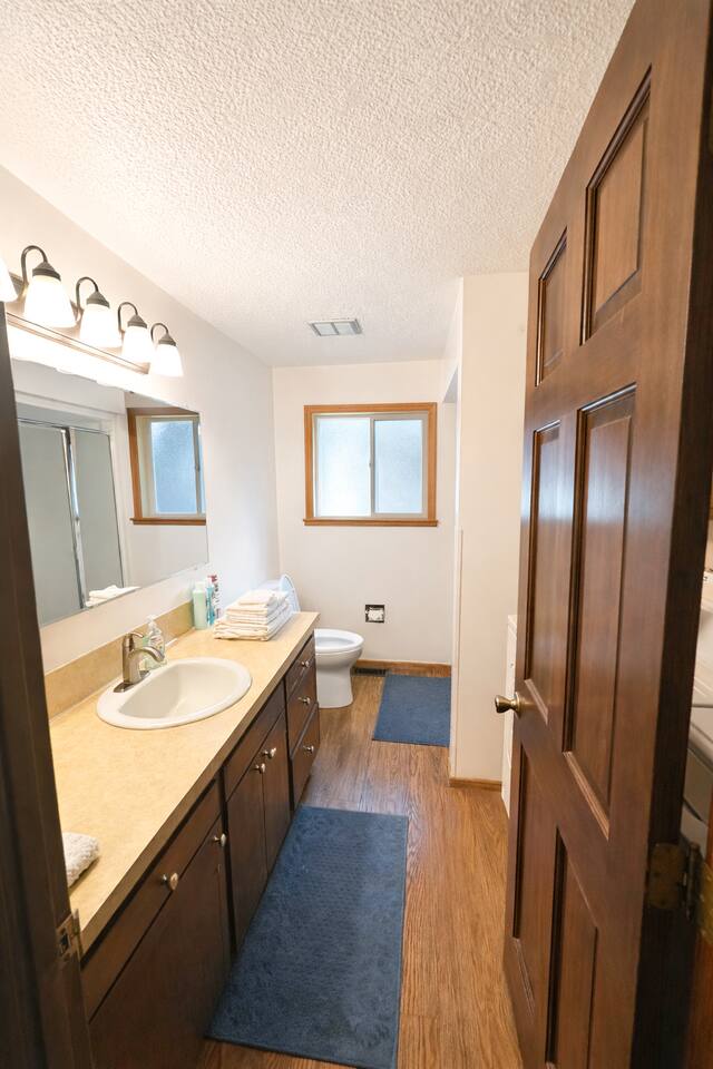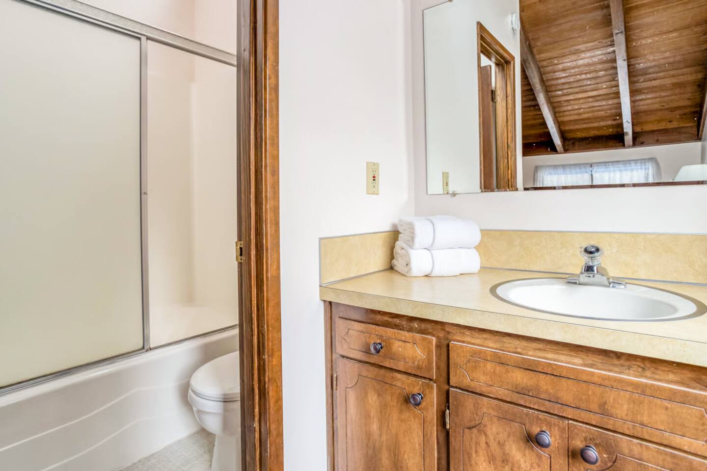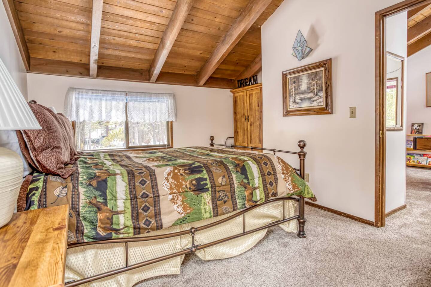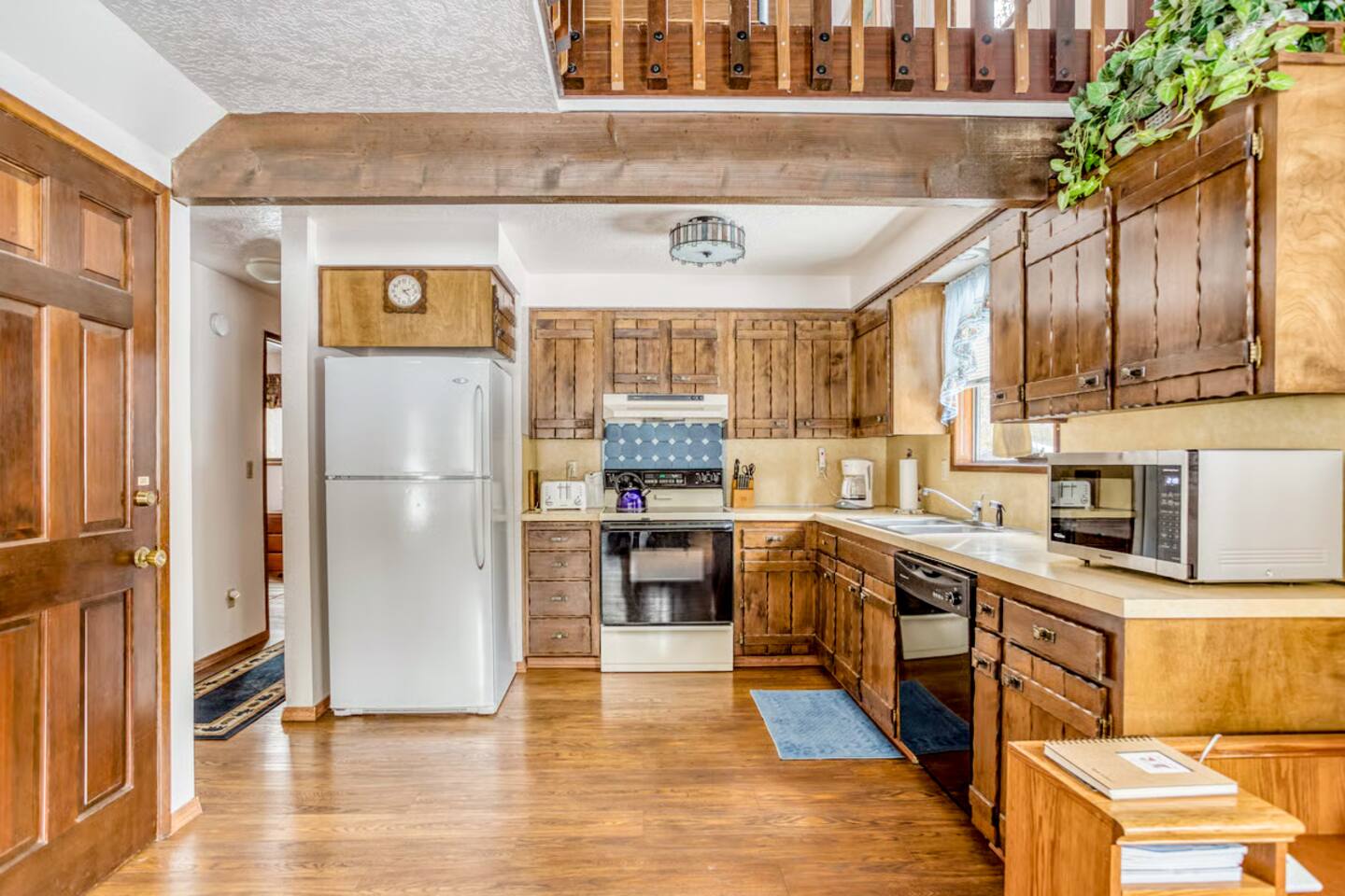 This spacious, classic cabin offers a warm, inviting atmosphere with plenty of room for your family and friends. Bring along up to two furry friends or take advantage of a Pack n' Play travel crib for your little ones. Main floor: *Living room: Settle into the large living room, featuring ample seating, a flat-screen Smart TV for your personal streaming apps, and a cozy electric fireplace. *Kitchen and dining: Prepare meals in the full kitchen, equipped with a dishwasher, oven, stove, full-sized fridge, coffee maker, kettle, toaster, and blender, plus cookware, dishware, wine glasses, and cooking essentials. Enjoy meals in the large dining room. *Bedrooms: This floor includes a cozy bedroom with a queen bed and a second bedroom with a bunk bed (double on the bottom, single on the top). Both have room-darkening shades. *Bathroom and laundry: A full bathroom with a standing shower and a washer and dryer are available for your convenience. Upstairs loft: *Game room and workspace: The large upstairs family room features a pool table, a comfortable double futon with a privacy screen, and a dedicated workspace with a large widescreen monitor. *Primary suite: The primary bedroom includes a queen bed and a full en suite bathroom with a combination bath and shower. Outdoor area: *Step outside to find direct trail access, a large private hot tub, a gas grill, and an outdoor dining and seating area. *A full garage has plenty of bikes, cornhole boards, and other amenities that are available to guests. Amenities for your stay: *Keep comfortable with conditioning, central air, portable fans and extra blankets *Entertainment: Fast WiFi, board games, and books (take it with you if you aren't done!) *Family-friendly: Pack n' Play travel crib, children's books, and a children's bike trailer included. *Pet-friendly: Waste bags provided!