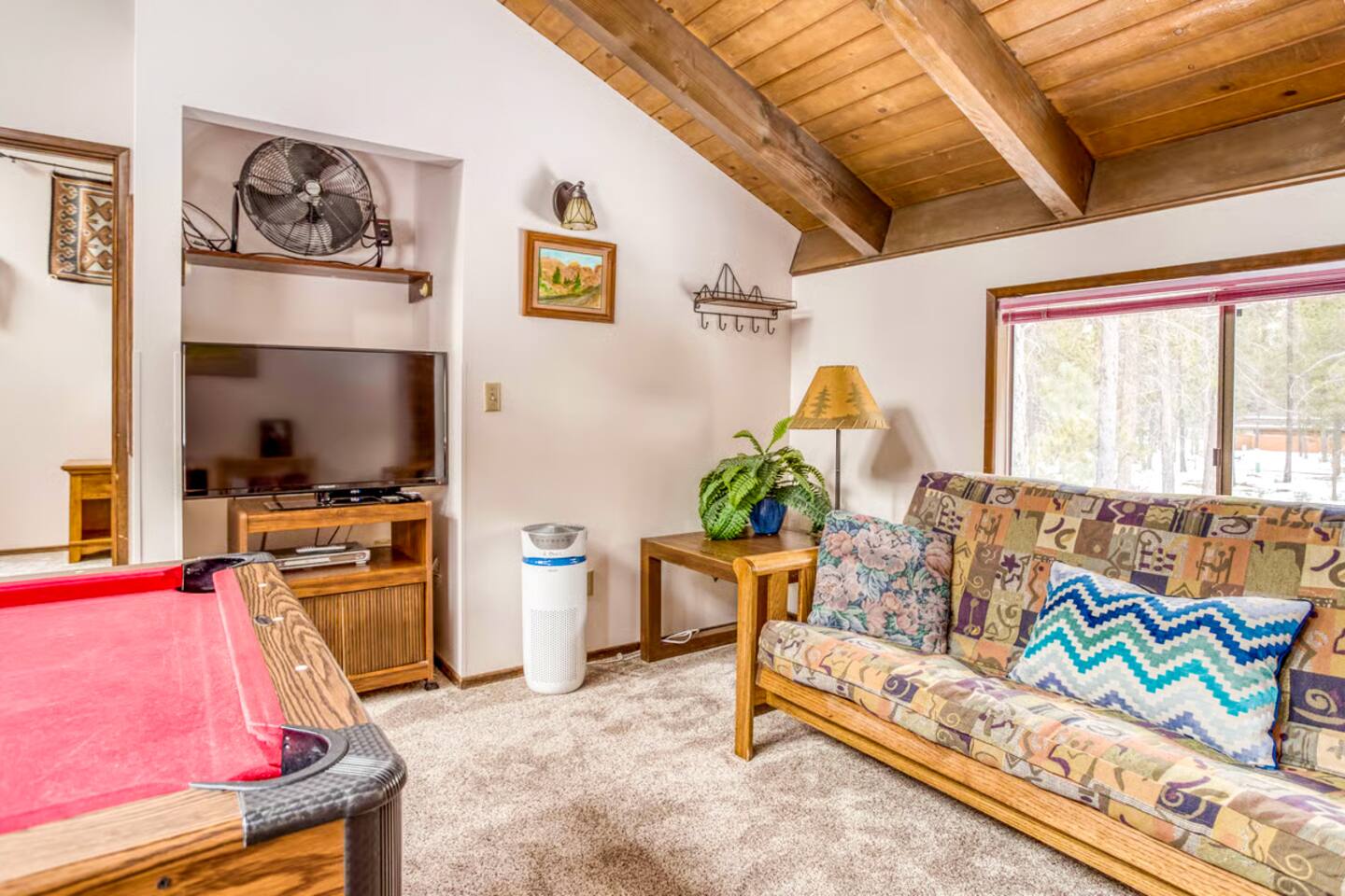 Escape to Fawn Cabin, your high desert home base for family fun and relaxation. This 3-bedroom, 2-bath, dog-friendly home sleeps up to 8 people and offers an unbeatable location just minutes from the SHARC pool and The Village. Explore Sunriver with enough bikes for the whole family and 8 free SHARC passes, or unwind with a large private hot tub, pool table, gas grill, and cozy fireplace after a day of adventure at nearby Mt. Bachelor.